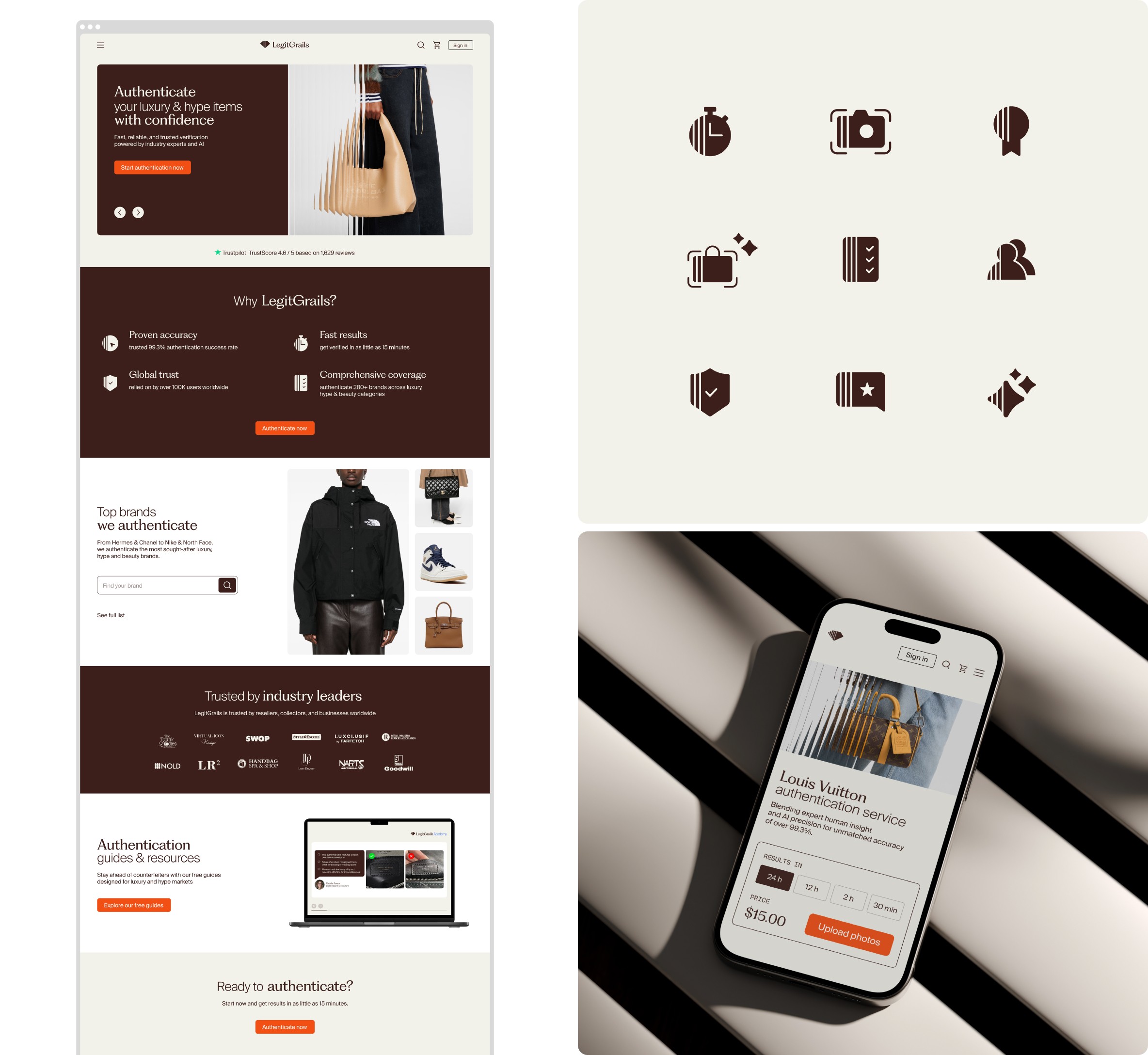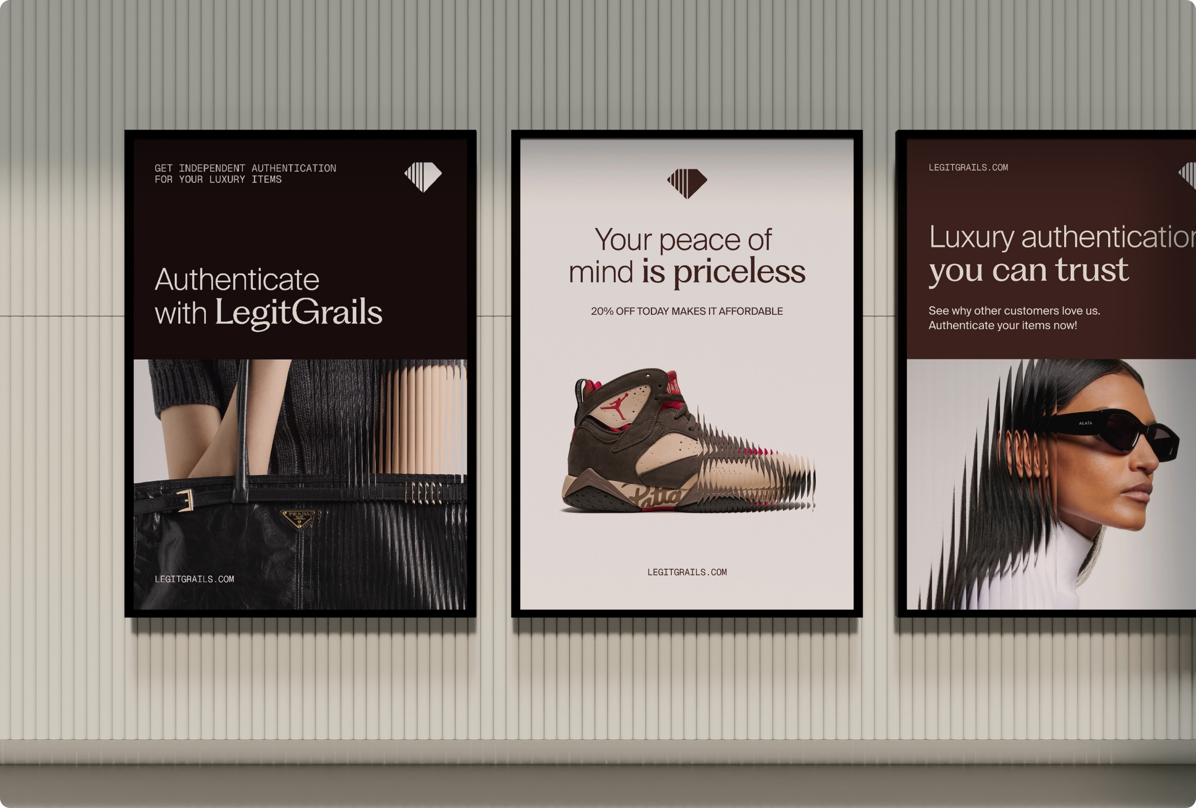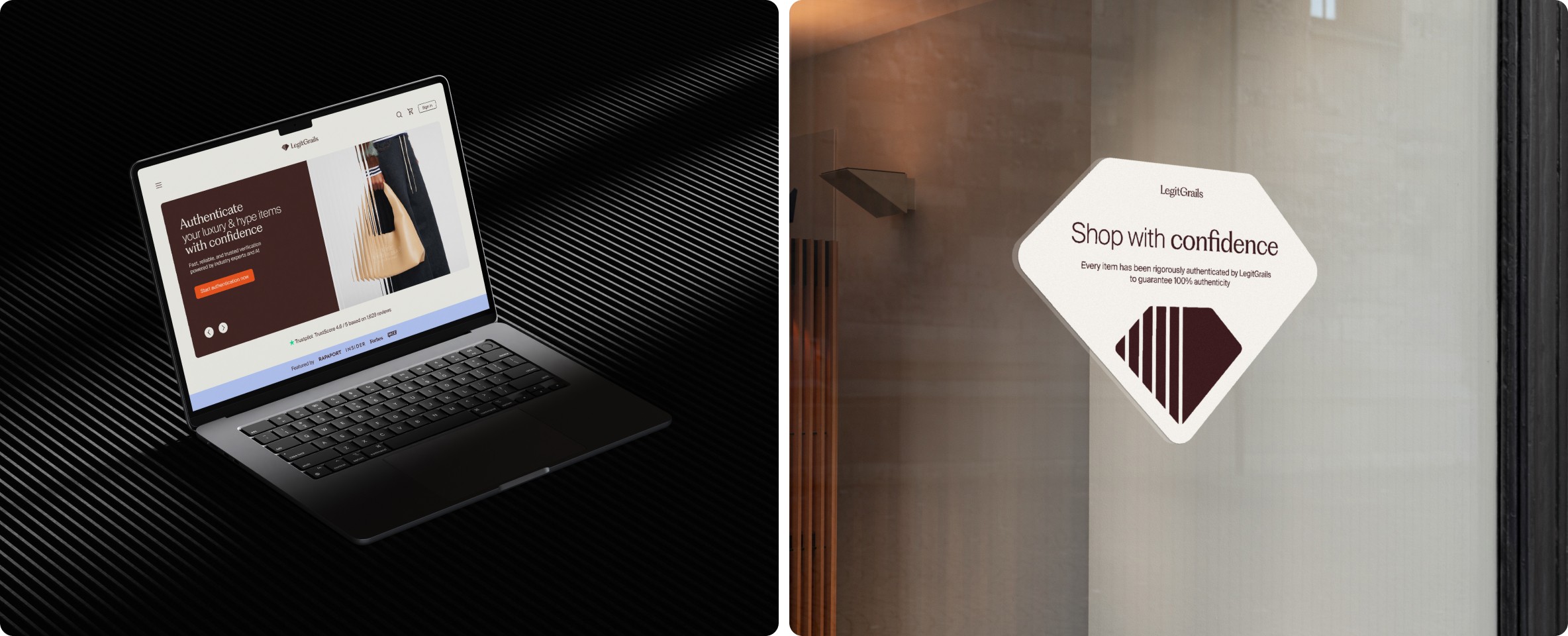 A global authentication service specializing in luxury, streetwear, and designer products. The brand positions itself as a trusted authority by combining expert authenticators with AI technology, delivering accuracy rates above 99%. The identity blends luxury minimalism with modern digital credibility, emphasizing trust, transparency, and accessibility for fashion enthusiasts worldwide.