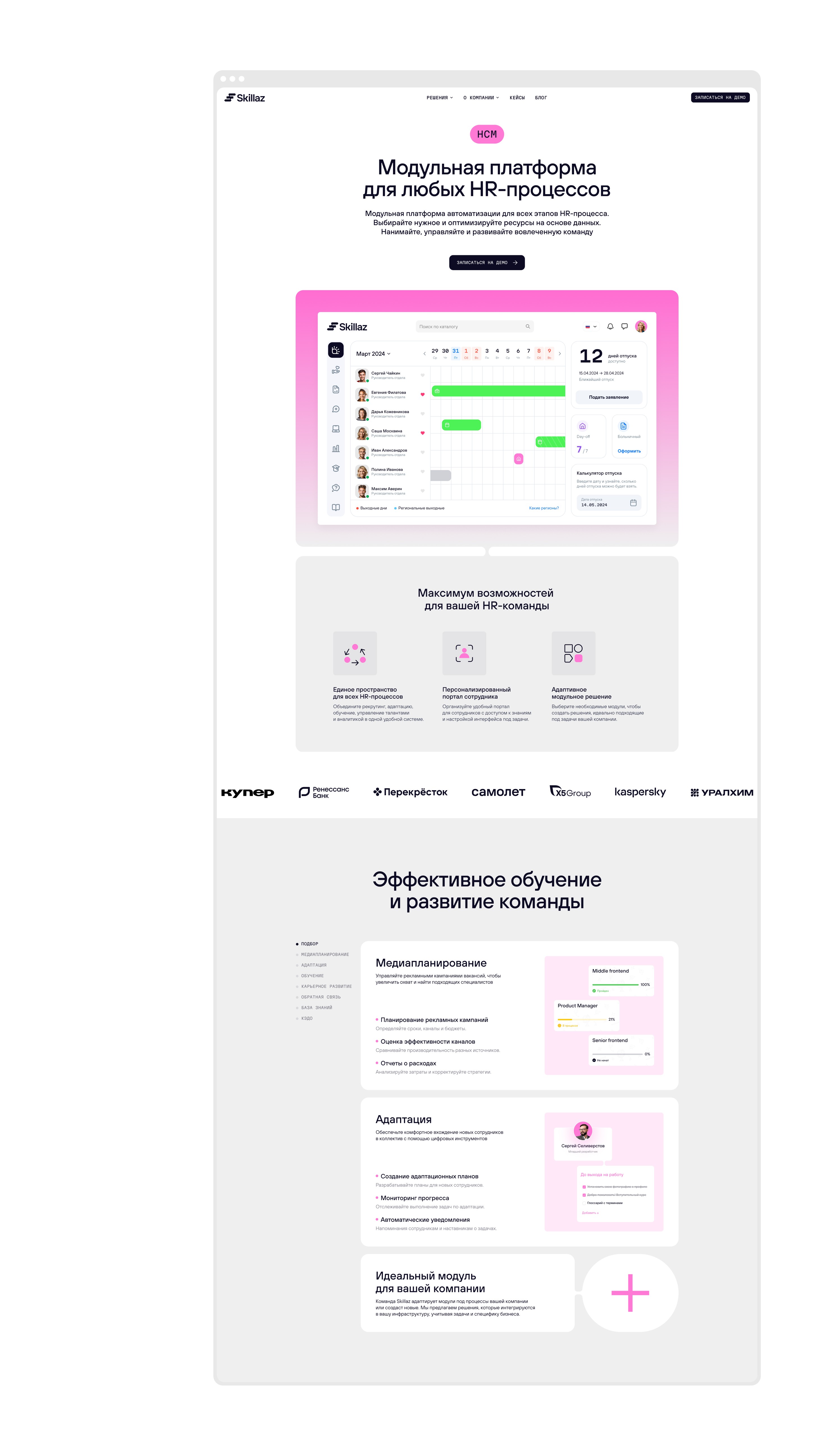 A modular HR platform that automates recruitment and employee development processes, helping companies make hiring, onboarding, training, and performance evaluation more efficient, transparent, and scalable.The brand identity reflects its modular approach, I designed the website along with social media visuals in a cohesive style.